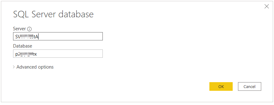 • In the Data source settings, select Data sources in current file by clicking on the radio button, and click the Change Sources button. The SQL Server database dialog box appears.