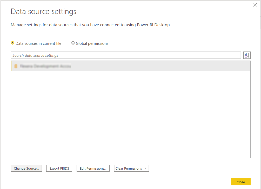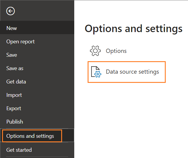 • Click on the File menu, select Options and settings, and select Data source settings.