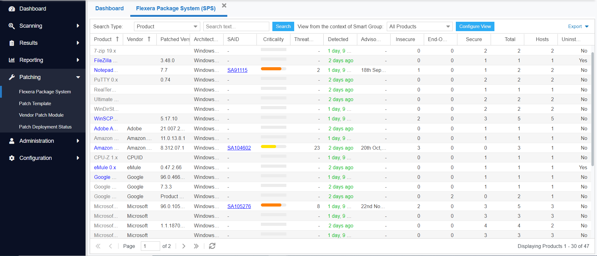 Flexera SPS page now available in non-IE browser also. In order to use complete feature of patching, need to install Software Vulnerability Manager Plugin.